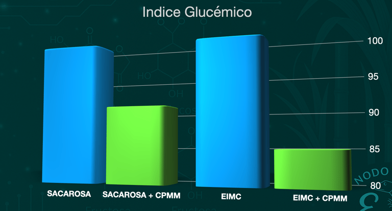 La adicionada del Complejo de Polifenoles Moduladores del Metabolismo (CPMM) de origen natural, disminuye significativamente el IG en formulaciones con sacarosa o EIMC. Esta innovación da origen a SupraCaña como un sistema edulcorante de nueva generación.